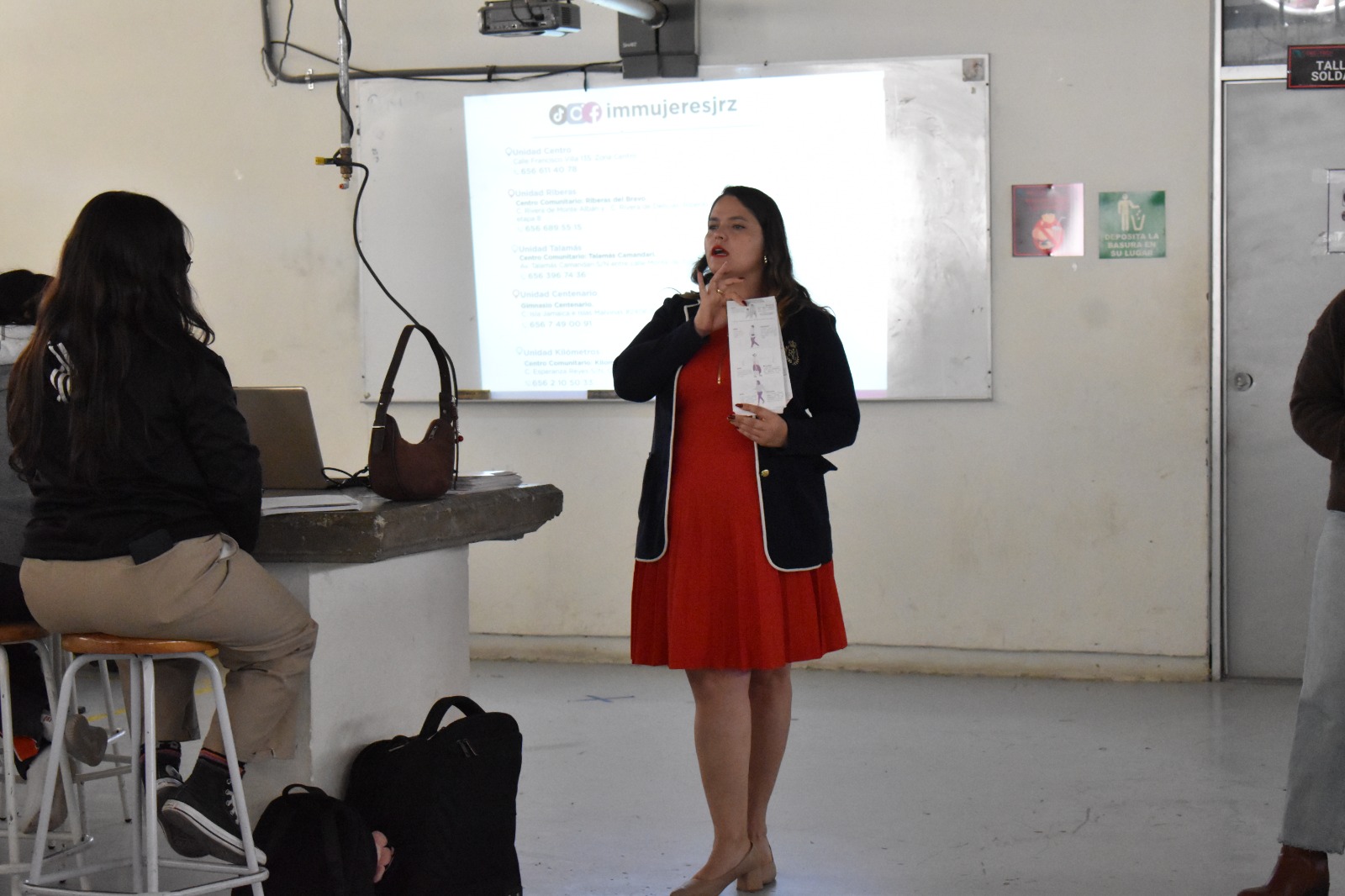 En este sentido, el equipo del Módulo de Atención y Prevención Itinerante del IMM (MAPI) brindó una charla informativa y de sensibilización sobre mitos y realidades del acoso sexual callejero, dirigida a estudiantes del Centro de Estudios Científicos y Tecnológicos No. 9 (CECyT 9), ubicado en Lomas de Poleo.