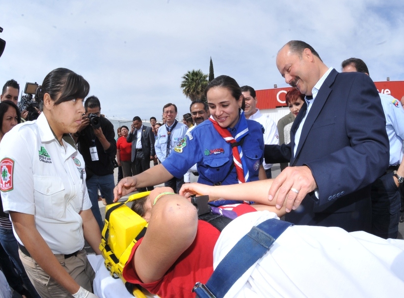 Al reconocer que fue un accidente muy lamentable que afectó a las familias chihuahuenses, el Gobernador César Duarte Jáquez y su esposa, Bertha Gómez de Duarte dieron la recepción en el hangar del Gobierno del Estado, acompañados con familiares, amistades y dirigentes nacionales y locales de los scouts, a los jóvenes lesionados en accidente carretero ocurrido en días pasados en el Estado de Zacatecas, quienes fueron trasladados vía área en aeronaves del Estado.