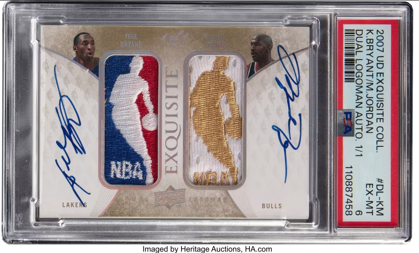 La colección Dual NBA Logo Autographs fue producida entre 2004 y 2009 por la compañía Upper Deck. Cada tarjeta fue lanzada en edición única, con Jordan apareciendo en ocho ocasiones junto a figuras como LeBron James y Scottie Pippen, mientras que Bryant figuró en once.