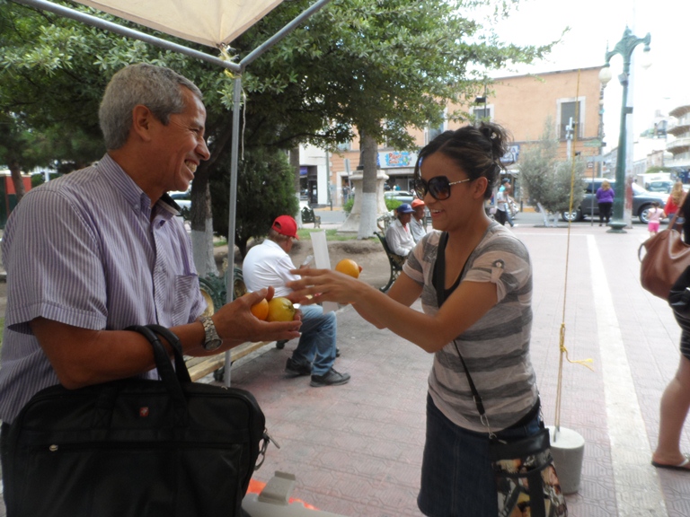 Ante las altas temperaturas que superan los 40 grados en Chihuahua, el gobierno del estado puso diversos puntos de hidratación en diversas partes de la ciudad, otorgando a la ciudadanía agua fresca, bolis y naranjas.