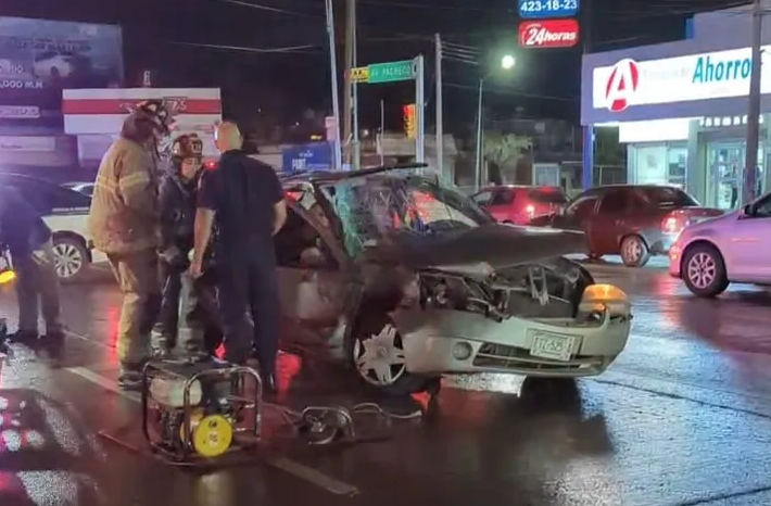 Una mujer resultó atrapada dentro de su vehículo luego de un aparatoso accidente registrado en la intersección de la avenida Pacheco y la calle 20 de Noviembre, en la ciudad de Chihuahua. El percance movilizó a equipos de emergencia y generó expectación entre los automovilistas que circulaban por la zona.
