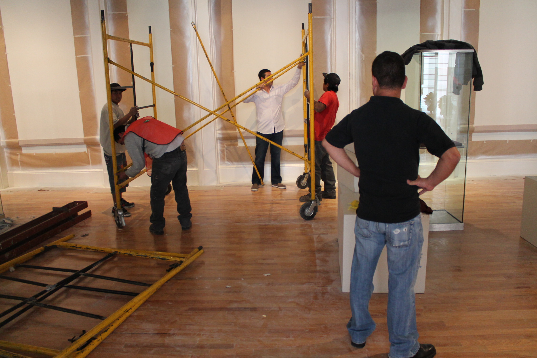 edificio que incluye reparación de la cornisa de cantera de remate exterior perimetral, pintura interior de muros de las áreas de exhibición pendientes y pintura general de ventanería, puertas y marcos en los tres niveles del edificio.