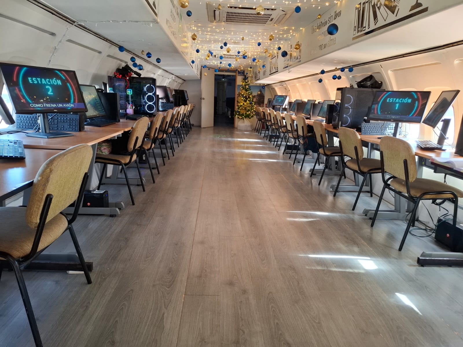 El Biblioavión es una biblioteca interactiva que está dentro de un Air Boeing 737, tiene una capacidad en su interior para 120 niños.
