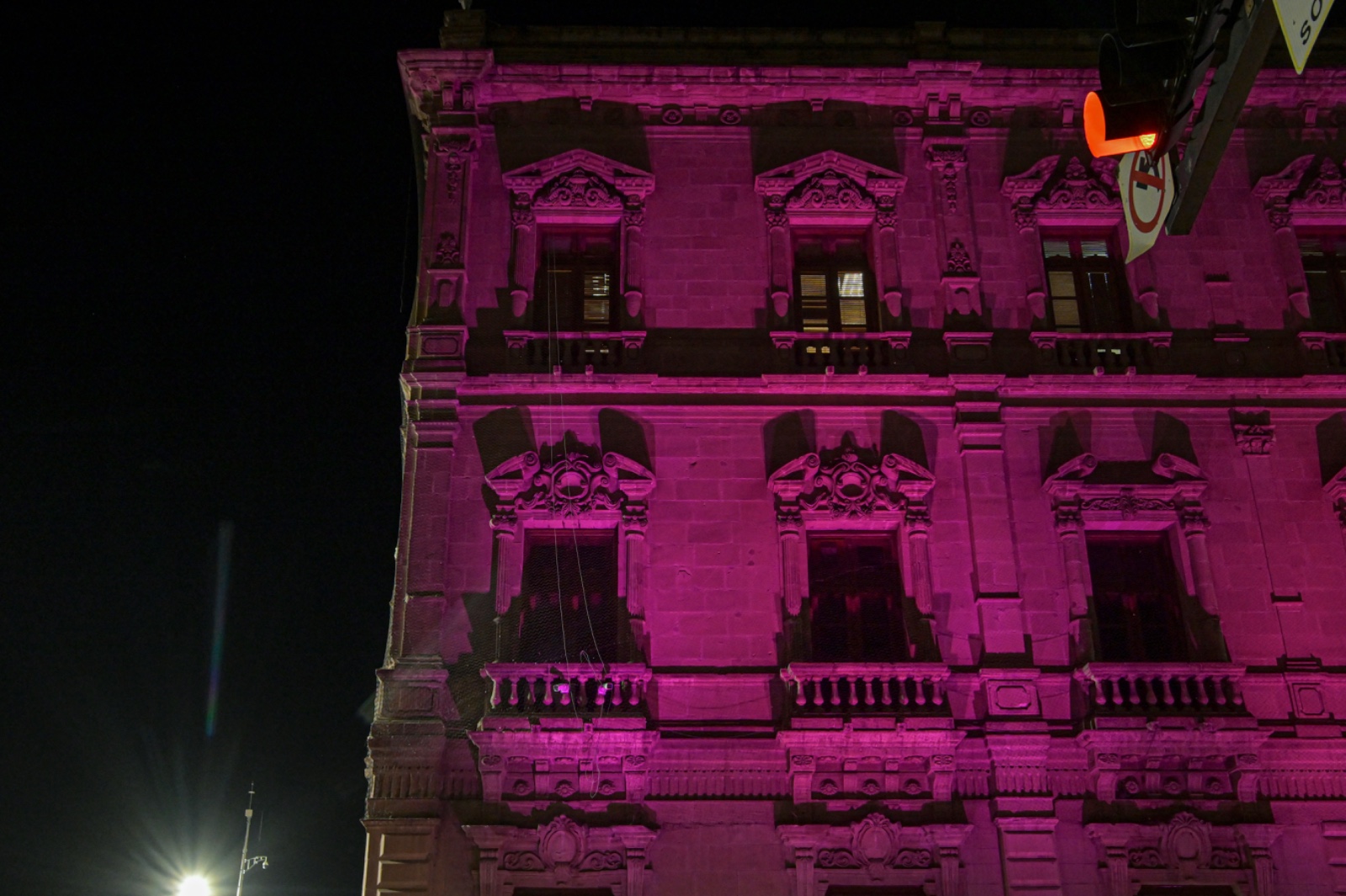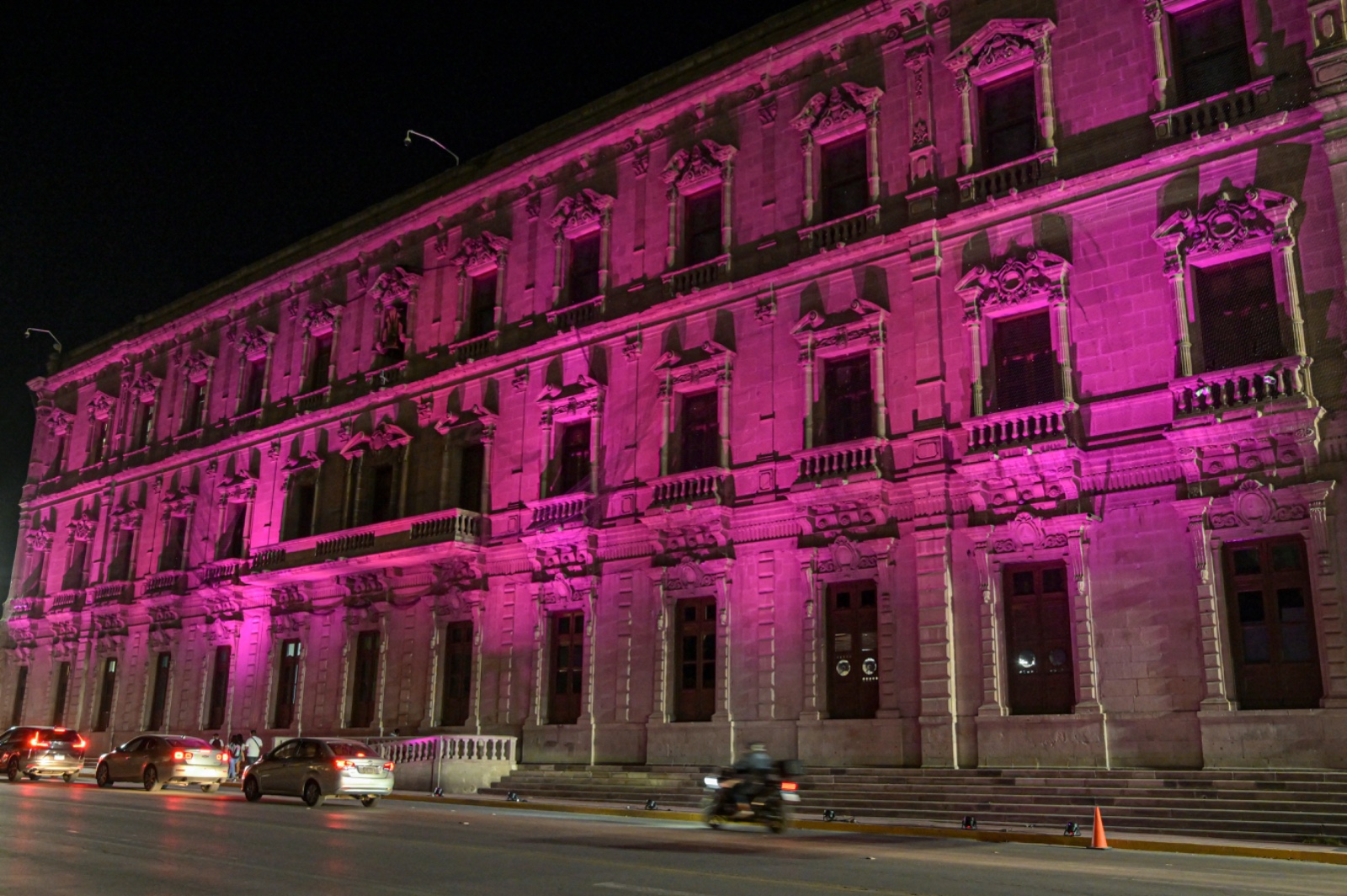 En el mes de la sensibilización y lucha contra el cáncer de mama, y el cáncer cervicouterino, el Palacio de Gobierno fue iluminado de rosa, en atención al compromiso asumido por el Estado a favor de la salud de las mujeres chihuahuenses.