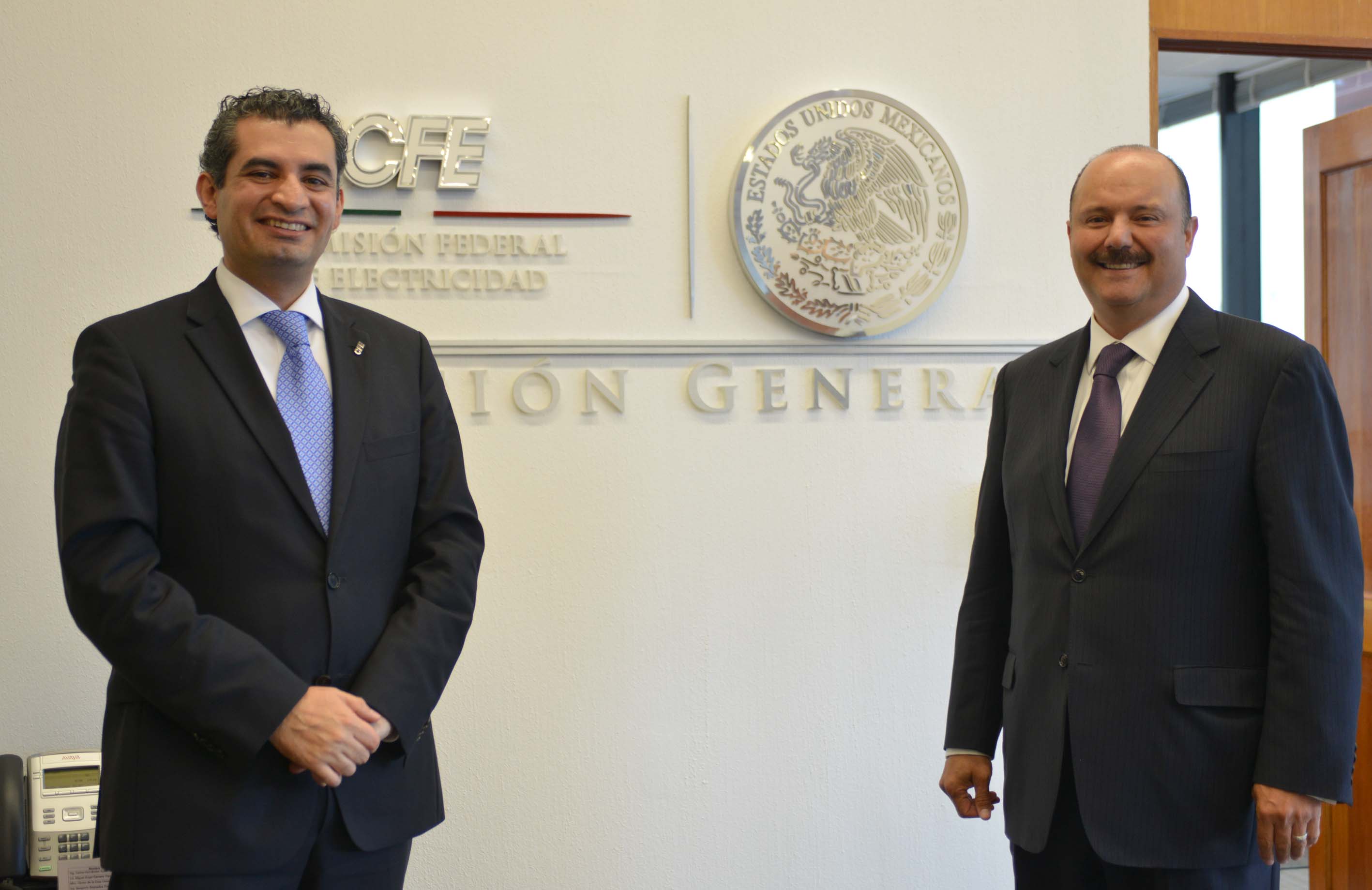 El Gobernador del Estado, César Duarte Jáquez, sostuvo una reunión de trabajo en la ciudad de México con el Director Nacional de la Comisión Federal de Electricidad, Enrique Ochoa Reza, con el fin de mejorar las tarifas eléctricas en la entidad.