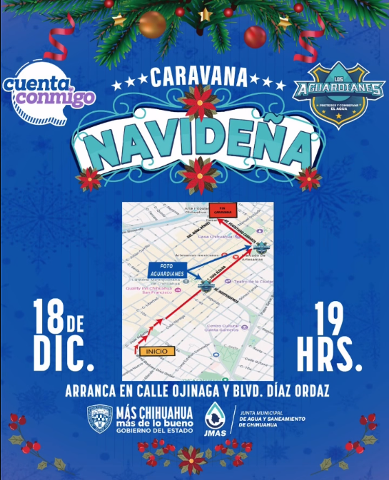 La Caravana Navideña de Los Aguardianes se realizará este jueves 18 de diciembre con un recorrido por distintas calles del centro de la ciudad de Chihuahua, como parte de las actividades decembrinas dirigidas al público en general.