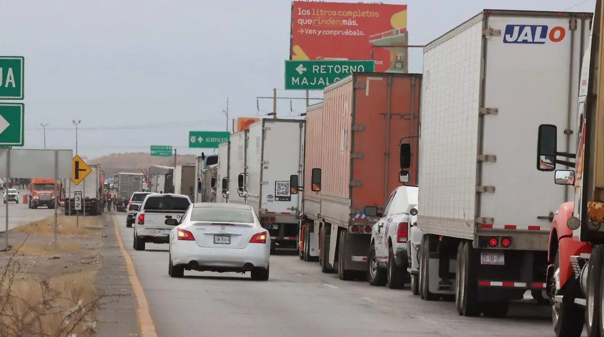 La tarde de este martes, un grupo de transportistas bloqueó la carretera Chihuahua–Ciudad Juárez a la altura del kilómetro 32, después de la caseta Sacramento, lo que provocó un fuerte congestionamiento vehicular en ambos sentidos.