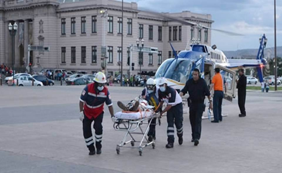 El Helicóptero Halcón 1 de la Dirección de Seguridad Pública Municipal, trasladó a un menor de 13 años de edad, desde ciudad Cuauhtémoc a la Plaza del Ángel de Chihuahua capital, debido a que sufrió una herida de consideración en la parte superior de su brazo izquierdo, en hechos registrados en ciudad Madera.