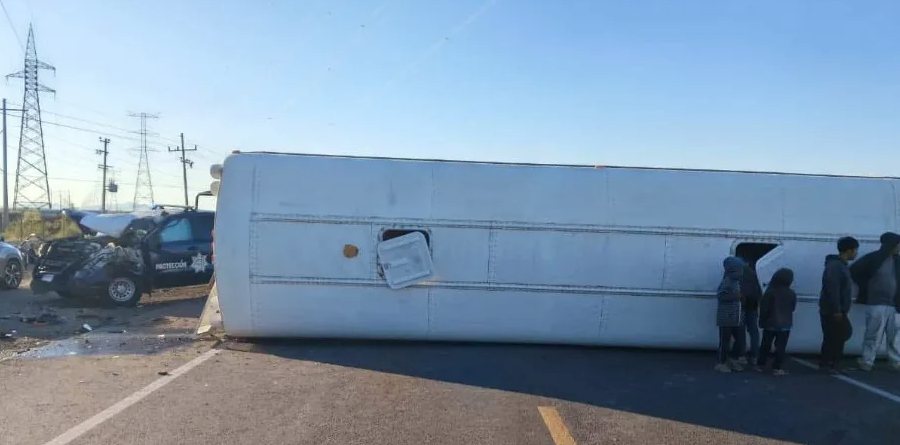 Nuevo Casas Grandes, Chih.— La mañana de este sábado, un camión que transportaba a jornaleros agrícolas volcó luego de ser impactado por una patrulla de la Policía de Protección Federal, dejando a varios trabajadores y a los uniformados lesionados.