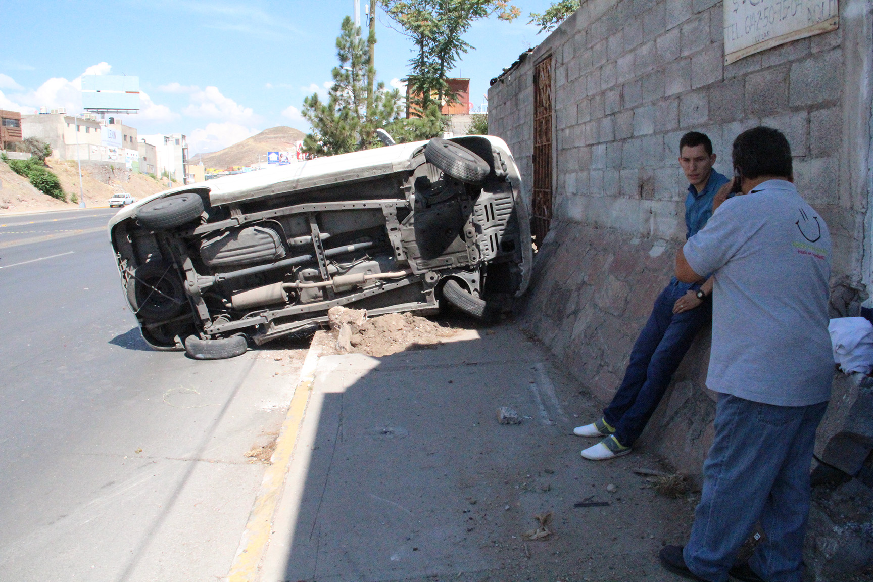 En la avenida La Cantera y calle Washington, ocurrió una volcadura, cuando el conductor de una camioneta iba circulando a exceso de velocidad al bajar del puente y le ganó la curva. Se impactó contra un árbol y un señalamiento vial; el conductor resultó ileso.