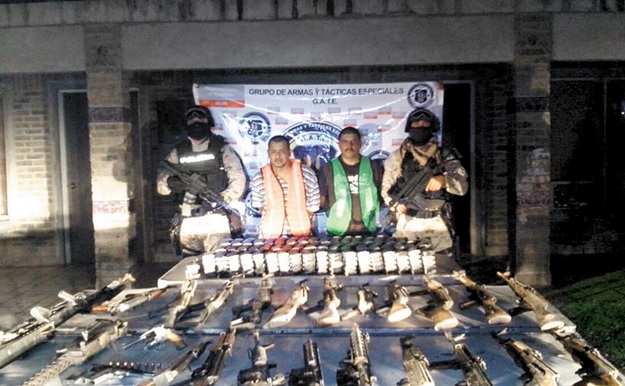 “Derivado de un trabajo de inteligencia por parte de elementos del Grupo de Armas y Tácticas Especiales (GATE) y Policía Estatal Acreditable, se logró el aseguramiento de 2 arma cortas, 21 armas largas de uso exclusivo del Ejército, dos ametralladoras, así como 280 cargadores y 135 cartuchos”, detalle el informe.